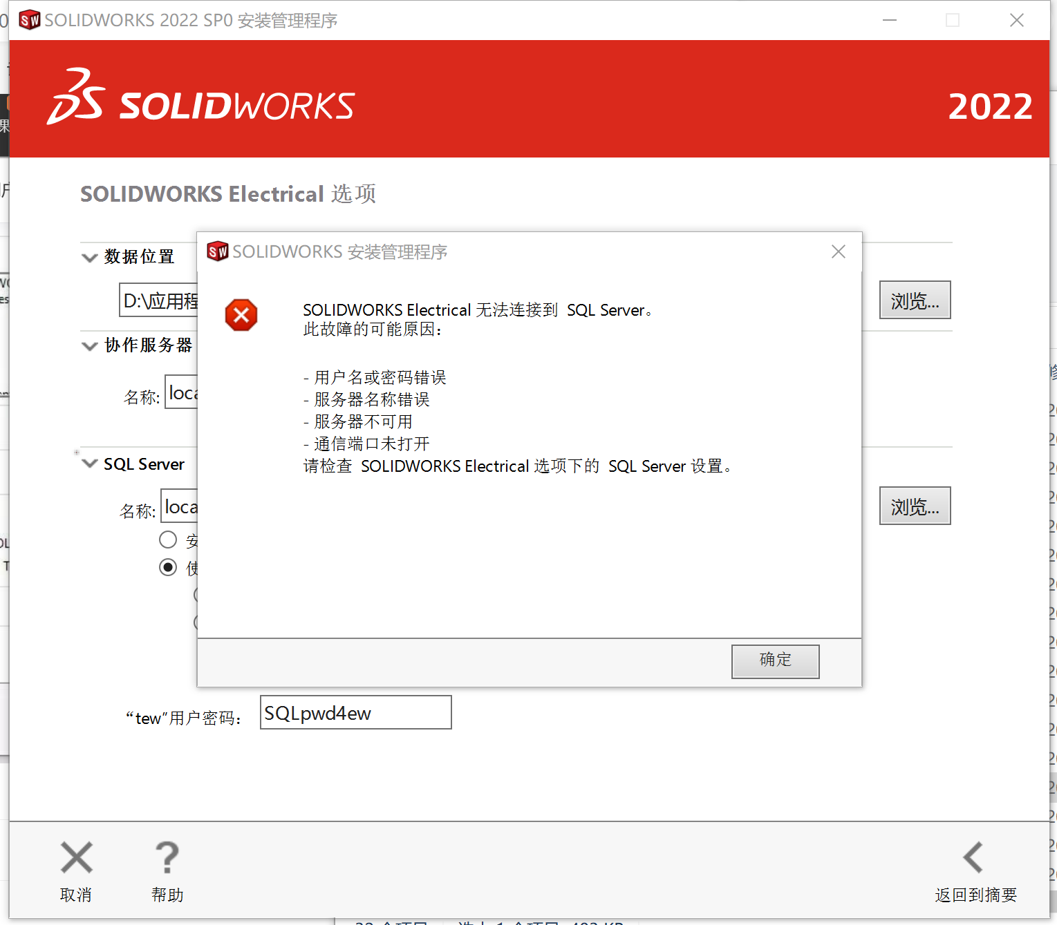 如果SOLIDWORKS安裝管理程序在安裝過程中提示Microsoft SQL Server安裝失敗,可能是由于以下原因?qū)е碌模?/p>